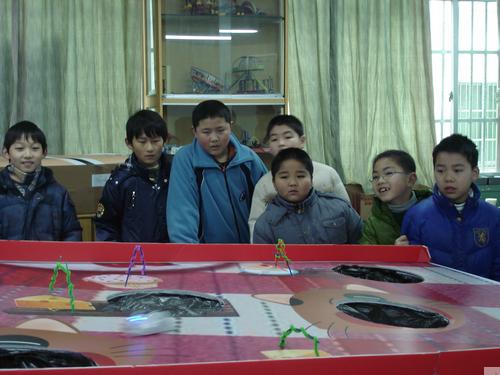 活动由遥控类模型和制作类模型组成,学生们可根据各自的喜好和特长参加不同的竞技板块。“贪吃鼠”、“赛车环球之旅”等车辆遥控竞技区域聚集了众多的低年级小“模型”迷们,他们对易于操控的车辆模型表现出了极大的兴趣,参与学生只需在规定时间内控制车辆完成钻洞、绕行建筑模型等任务。相比车模竞技,“水中探险”、“快艇绕障”等航模竞技游戏则对操控技能有更高的要求,因为快艇或船只不仅要克服水中的压力前行,还要避开水中的障碍或拾起水底的“宝藏”,看着这项稍有闪失便前功尽弃的“难度作业”,一旁的家长们也忍不住为孩子们喊起了“加油”“小心”……今年新增的“机器人投篮赛”得到了众多“模型迷”们的追捧,因为受操纵的机器人模拟了人体运动的特征,需要完成步行前进、手臂摆动、转弯、瞄准投篮等动作,着实挑战了学生们的耐心与控制技能。持续两个半天的活动让科技迷们着实过了一把模型瘾,他们体会着现场热烈竞技气氛的同时,也让自己的科技竞技能力得到了锻炼。