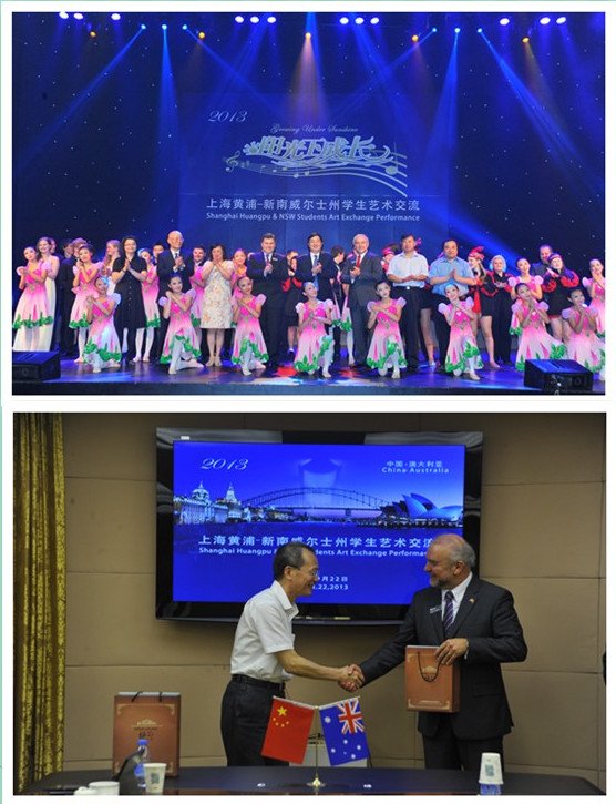 ???????? 晚上,由黄浦区教育局和澳大利亚新南威尔士州教育和社区部联合主办、黄浦区青少年艺术活动中心和汉恩国际教育文化交流中心共同承办的“阳光下成长”——2013黄浦—新南威尔士学生艺术交流活动在上海商城剧院隆重举行?;破智逃彻の榧翘坪1?、区教育局副局长江伟鸣以及澳方的领导和嘉宾出席了本次交流活动,全区各中小学校的近千名师生也到场观摩了交流活动。