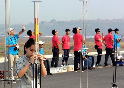 参加此次比赛的同学着实不易。大同初级中学的汤继灵同学,平时学业繁重,事物繁多。但是她不畏困难,总是挤出时间训练。在决战中,她沉着应战在决赛局中全神贯注——领取发动机,把心爱的火箭模型装入导轨上的助推管,接通电源,申请起飞。随着裁判员的一声令下,“5、4、3、2、1,点火,发射”,S9A火箭像是离弦的利箭直插苍穹,飞过跑道、越过高速公路,飞向村庄,把高粱田远远地抛在身后……最终,汤继灵同学以绝对优势傲视群雄,摘得该项目专业组金牌,同时获国家级健将称号!