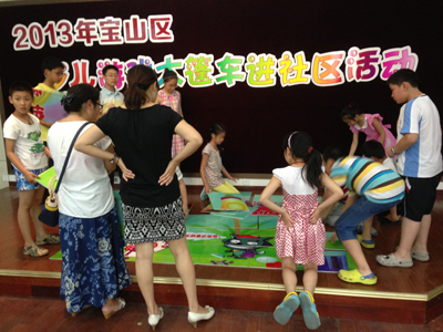 ???????? 为丰富本区少年儿童的暑期生活,让队员们快乐度假,宝山区少工委、宝山区少年宫联合多家社区少先队组织,在7月份集中开展了“2013年宝山区少儿游戏大篷车进社区活动”。