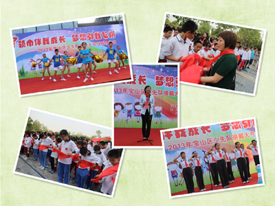 为庆祝中国少年先锋队建队64周年,引领全区少年儿童深入开展“红领巾相约中国梦”主题教育活动,2013年10月10日下午,由宝山区少工委、区少年宫联合举行的“领巾伴我成长·梦想引我飞翔”——2013年宝山区少先队换戴大号红领巾仪式,在长江河口科技馆广场隆重举行。团区委副书记、区少工委主任孙兰,区科委副主任朱建华等出席了活动,和来自全区的1400多名少先队员共同见证了成长的历程。?