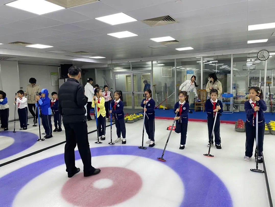 ? ? ? ?在冰壶馆,同学们在冰壶国际级裁判王珏教练的带领下,了解了冰壶运动的基本规则和技巧。从最初的蹒跚学步到逐渐掌握冰上平衡,再到能够将冰壶推向目标区域,他们已经化身为了一个个小小“冰上运动员”。除了技能体验,还设置了小组对抗赛,同学们明确分工,充分发挥团队精神,每一次成功的投掷都伴随着队友们的欢呼与鼓励,进一步加深了他们对冰壶运动的理解与热爱。