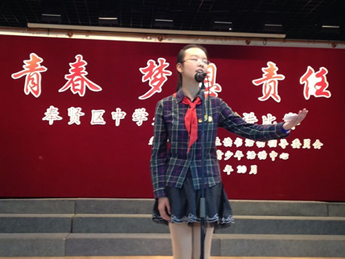 根据市少工委关于在全市少先队员、少年儿童中普遍开展“美丽少年梦”主题教育活动的总体部署,为丰富校园文化生活,推动校园文化建设,浓厚语言学习氛围,提高学生综合素质,展现当代中学生风采,10月25日下午,以“青春·梦想·责任”为主题的奉贤区中学生双语演讲比赛在青少年活动中心多功能大厅举行。