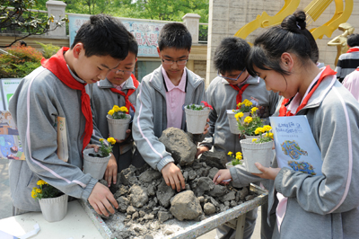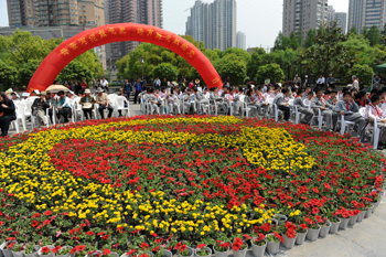 ?一粒粒用苏州河泥做成的花肥,它来自苏州河上游白鹤镇万狮渡口,洁净而没有污染,它将催生出一朵朵绽放的鲜花。一只只用饮料包装做成的花盆,盛载的鲜花组成党旗的图案在阳光下格外鲜艳。今天(29日),“母亲河泥做花肥,培育鲜花献给党”主题活动在普陀区长寿公园正式启动,“七一”前,由万盆中小学生精心培育的鲜花将组成党徽图案大花坛,为建党90周年献礼。