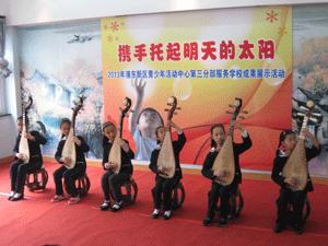 领导们听取了第三分部专业教师开展服务学校的工作汇报,并在阳光大厅和民乐活动室观摩了由各服务学校孩子们带来的“唐诗长卷”的现场书法创作、机器人DIY活动及动态展演活动。琵琶重奏、二胡齐奏、琵琶独奏、二胡与琵琶合奏、舞蹈等8个精彩节目,赢得了学校领导和老师们的阵阵掌声和高度赞誉;同时也提出,希望活动中心能长期开展下基层服务学校这项工作,帮助学校打造特色校园文化,提升学生的综合素养。