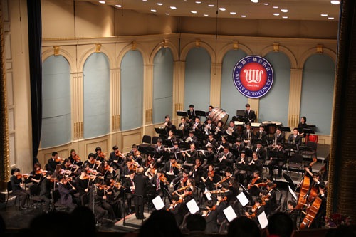 2014年1月5日,在上海星期广播音乐会32年历史上,诞生了一个最为年轻的新年音乐会:上海学生交响乐新年音乐会!当上海的莘莘学子和音乐才俊由著名指挥家曹鹏先生执棒,奏响贝多芬的第五交响曲时,上海音乐厅荡漾着青春的活力。上海学生交响乐团表现出昂扬的精神风貌、富有饱满的激情和专业的演出水准,赢得了观众和艺术专家的称赞,现场响起了长时间的热烈掌声。