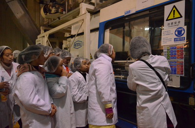 上午,在雀巢饮用水工厂,参观生产流水线,体验Project?WET项目,同学们换上了崭新的工作服、特制的工作鞋、还有防发帽和耳塞,身临其境的进入厂房,来到生产第一线,在工作人员的讲解和安排下,从饮用水瓶的制作、到地下水的挖掘到饮用水的灌装成品以及水质的检验等生产过程一一做了参观和体验,近距离得靠近机器和流水线,听着机器的轰鸣声,看着全自动化的饮用水生产灌装成品过程,学生们都觉得活动特别神奇有意义、这样的假期活动太有趣了、学到了课本里没有知识,受益匪浅。