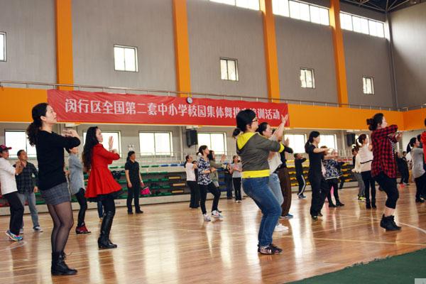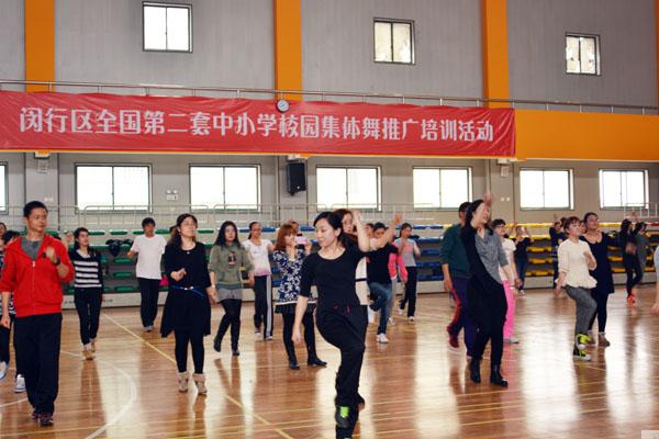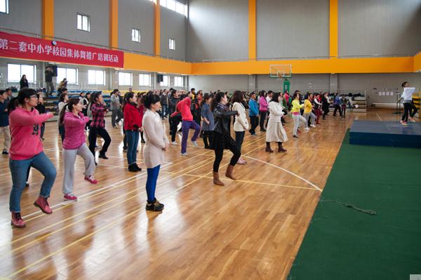 校园集体舞是区学生艺术节的必赛项目,也是活跃校园气氛很好的艺术形式,既能增进学生间的情感交流,又能使身心获得愉悦。推广活动分初、高中和小学三组分别进行,每校安排两名教师前往学习,多为音乐和体育老师,活动现场老师们学习热情高涨,跳得热火朝天。随着小学组欢乐的舞步,此次推广活动圆满结束。
