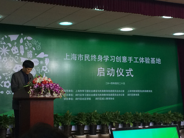 近日,在闵行区社区学院举办了“上海市终身学习创意手工体验基地”启动仪式。由上海市教育委员会,区教育局有关领导为启动仪式揭牌,各区县教育局、社区学院领导、有关专家、社区居民前来参观“上海市终身学习创意手工体验基地”创意活动。