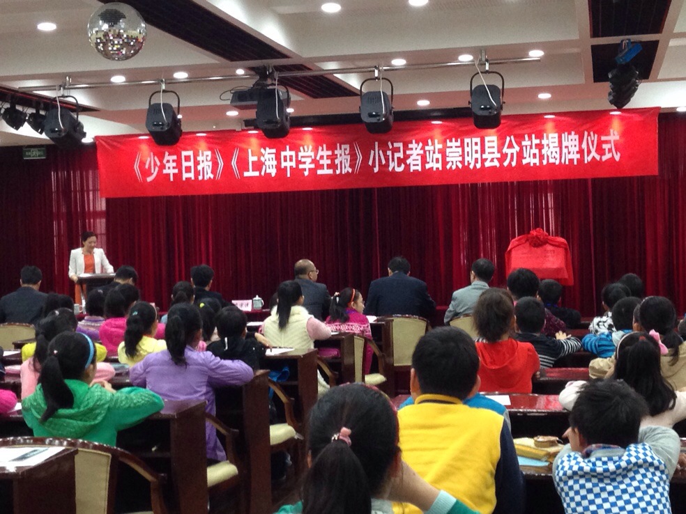 4月27日上午,少年报社小记者站崇明分站揭牌仪式暨崇明县分站开学第一课在青少年活动中心举行。上海教育报刊总社副社长徐勇、上海教育报刊总社学生媒体发展中心总编辑赵玉平、小记者站崇明县分站名誉站长、崇明县教育局副局长黄宗逵、崇明县青少年活动主任顾锦匡、崇明县教育局体卫艺科主任张裕标出席了揭牌仪式。