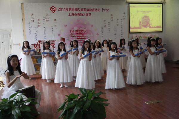 活动随着如同天籁般的口风琴表演《天空之城》拉开了序幕,通过“心系女童”系列活动宣传片向全场观众介绍了心系项目6年来走过的心路历程、取得的丰硕成果以及对未来项目发展的计划蓝图。随后,所有出席活动的领导上台开启了上海市“女生第一课﹒玫瑰课堂”,为女童家庭代表赠送了关爱礼包。闵行区中心小学的马莉莉老师为女学生代表和全场观众展示了第一堂青春期教育课——甜蜜度过那几天,通过ppt向大家介绍青春期女孩发育的特征以及青春期前后的外表对比,告诉孩子们要健康坦然地面对青春期,快乐、正确地经历青春期。最后,全国少男少女咨询门诊的发起者邓军老师现场解答了孩子们在青春期遇到的困惑,从悦纳自己、保护自己两个角度告诉女童们青春期是一个从女孩到女人过度的美好经历,要正视青春期更要学会保护自己。邓军老师还与现场的家长们进行了互动,叮嘱家长们重视孩子青春期的成长和教育,争做合格的家长。
