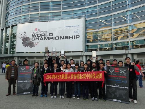 2014年VEX机器人世界锦标赛于4月23日至26日在美国加利福尼亚州阿纳海姆市隆重举行。共有来自中国、新西兰、加拿大、巴西、波多黎哥、巴林、新加坡、日本、法国、中华台北、中国香港、美国等国家和地区的近800支参赛队参加了此次比赛,这也是VEX机器人世界锦标赛举办至今,参赛队伍最多,规模最大的一届。