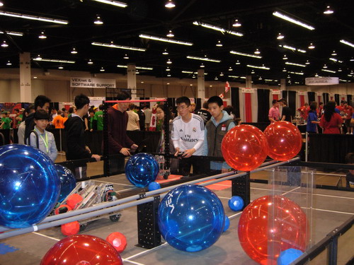 本届VEX机器人世锦赛的比赛主题是“Toss up”,任务是在规定的场地、时间内把相应的小球和大球投到得分区域内,并阻止对方完成得分任务。比赛是采取由2个单队组成的联队与另一支联队进行对抗赛。这就要求组合成联队的2支单队要有很好的战术配合。在比赛中,我队分别与来自美国、波多黎哥、新西兰、新加坡、中国香港等队伍组成过联队。在与外国联队的配合中,队员们用流利的英语与对方交流战术,充分发挥了合作的精神,相互切磋技艺,很好地完成了比赛。在这过程中,同学们的科学素养、技术研究能力等都得到了提升。