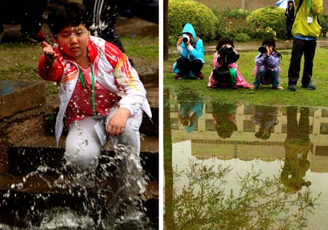 每年的摄影作品创作实践活动都是青少年摄影爱好者的嘉年华,来自全市各中小学爱好者们可以通过活动平台充分展示各自的拍摄技艺。虽然当天由于下雨公园里人烟稀少,但好在参赛学生有雨天创作的经验,能把春天的影调尽收于小水塘中,而阴雨天的摄影比赛也别有一番乐趣。