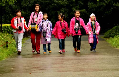 2014年4月27日清晨,雨丝不断的大宁灵石公园,迎来了一批特殊的游客。他们手持长枪短炮,身披雨衣,在公园内仔细寻觅着“猎物”。原来,他们是来自全市14个区县112所学校的近千名摄影爱好者,今天,他们冒雨前来参加2014“成功杯”上海市青少年摄影作品创作实践活动。绵绵的雨丝给参赛的学生带来了不少麻烦,但同时,也给他们增加了摄影创作的灵感。源于真实生活的创作,让学生们的摄影技艺和创作力得到了极大的发挥。雨中的创作,也给了孩子们许多的感悟。