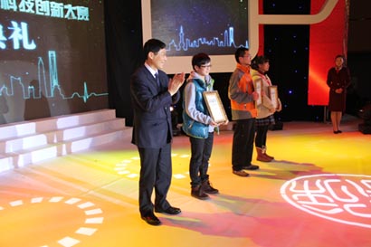 最终,大赛在青少年科技创新成果版块中评选出一等奖225名;评选出科技辅导员科教创新成果一等奖15名,优秀科技辅导员10名;少年儿童科学幻想画一等奖63名;青少年科技实践活动一等奖20名;优秀组织奖37名;还评选出专项奖获奖项目521个。本届大赛专设了“上海科学技术协会主席奖”,共有3个项目的同学获此殊荣。上海市科协主席、中科院院士陈凯先为获奖学生颁奖。