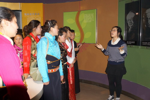 5月10日,探索馆联合上海IMB公司、上海市新陆职校,带领在沪就读的青海省果洛自治州30名藏族职校学生,开展了“科普人文和谐游,民族团结一家亲”户外科普采风活动。由于藏族学生们都是早期教育专业,所以行程设计安排上,首先针对性地安排参观了上海华爱早教中心,了解上海儿童早期教育工作近况,并在专业老师带领下学做幼儿手指操教学等方面的实践操作。这些十六七岁的藏族女生对儿童活动课实践充满了好奇,有的学生说,等我们回去,一定要把家乡青海的幼儿园办起来,也要和上海的幼儿园一样好。从这些年轻女孩的眼神里,可以看得出,散发出强烈的责任感和使命感。