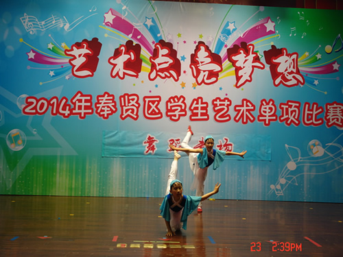 2014年5月23日下午,由奉贤区青少年活动中心组织承办的“艺术点亮梦想”奉贤区学生艺术单项比赛舞蹈专场假座古华中学报告厅正式开演。近百位选手来自区内各小学、初中和高中。民族舞、现代舞、爵士舞、拉丁舞精彩纷呈。老师和家长比参赛的选手更紧张,赛后选手和带队老师纷纷表示,今年的竞争比往年更激烈。这一方面归功于良好的比赛体制,另一方面也于近日频频出台的艺术加分参考政策息息相关。作为市教委认可的学生市级比赛,这一赛事的含金量可谓相当足,而各大名牌高校对于艺术特招生的界定门槛越来越高,这一纸证书既是对学艺术的孩子辛勤付出的褒奖,也是一块敲门金砖,所以竞争的激烈愈演愈烈。