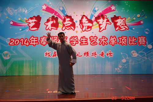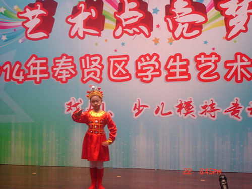 5月23日上午,在古华中学报告厅,三十名热爱戏剧表演的小朋友欢聚一堂,举行了“艺术点亮梦想”2014年奉贤区学生艺术单项赛戏剧和少儿模特专场比赛,其中戏剧比赛分小学、初中、高中组别共25人,少儿模特分小学、初中组别共5人。戏剧比赛中,节目形式多样,内容丰富,有故事、朗诵、戏曲、音乐剧等;少儿模特项目虽然孩子们平时接触甚少,但可喜的是人数也是在逐年增加。