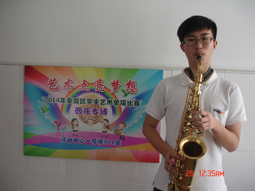 比赛开始了, 几十名选手纷纷拿出了各自的看家本领。小提琴、电子琴、双排键、吉它、圆号、口琴、萨克斯、爵士鼓等轮番上场。琴弦微颤,五指翻飞,一曲曲或舒缓或轻快的天籁之声将全场的气氛逐步推向高潮。选手们的高超技艺和精彩演奏博得了在场评委老师的阵阵叫好。