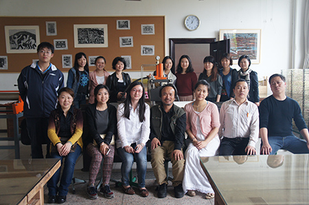 2014年5月13日,宝山区版画共同体教研组全体教师来到松江版画院开展交流活动。走进松江版画院,处处洋溢着版画的艺术特色气息。全区拥有创作队伍近百人,创作了700多幅农民丝网版画,其中出国展览27幅,全国展览97幅,上海展览210幅,荣获各种奖项15幅。