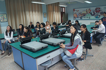 ???????? 活动当天,松江版画院陆永青院长还带我们参观了2所松江丝网版画特色学校,松江仓桥学校和松江三新学校。这二所学校的少儿丝网版画作品具有“自由绘写形象,大胆安排画面,人物和动物,强调动态,简括夸张,粗壮古朴而带点稚气,饶有风味地显出泥土气息”的艺术特点。在丝网版画的创作过程中,学生可以充分地发挥自己的想像力、创造力和表现力。同时,丝网版画创作过程的情趣性、实践性、表现内容的自由性和评价标准的多样性,能为学生提供最适宜的环境,有利于培养学生的创新精神和实践能力。丝网版画教学所蕴涵的这些积极的教育价值也正是学校校本课程所追求的。松江学校版画教学的硬件齐全,设施完善,师资力量雄厚,这些因素的组合促成了儿童丝网版画的诞生,给我们留下了深刻的印象。学生只有在愉悦的心态下,才能具有想学的良好愿望、勤学的坚韧意志、乐学的健康心态和会学的科学方法。融民族性、时代性、趣味性、创造性于一体的丝网版画,入门容易,学生初学就可在版画创作中获得成功的喜悦,有利于促进学生个性的健康发展。