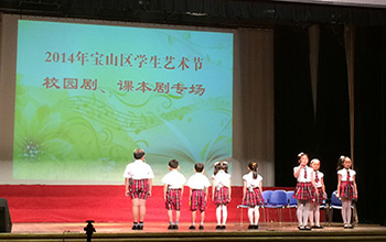 为了提升我区艺术教师对学校戏剧教育的认识及戏剧活动指导能力,我们特别邀请了上海戏剧学院戏文系、全国学校戏剧教育名师何莹为全区音乐教师作专题讲座;选送骨干艺术教师参加上海市学校戏剧教育培训活动;组织观摩全国优秀学生戏剧作品录像开阔视野;开展辅导员论坛,交流分享学校戏剧活动心得;组织区艺术名师团队走进基层学校进行指导,帮助老师提升实战能力。这一系列活动营造出浓浓的戏剧教育氛围,一批反映学生校园生活、富有童趣的戏剧原创作品,使我们的艺术舞台精彩纷呈:宝山区实验小学结合学校传统活动——“地球村”,以歌舞剧的形式为大家讲述了爱护环境、保护自然的故事;虎林路小学将学校科技特色有效融入校园剧“都市小农夫”,激发起学生热爱农业,关注生命,学习科学的良好情感;高境二小的孩子们以他们质朴的表演,引发了大家对PM2.5社会热点问题的思考。