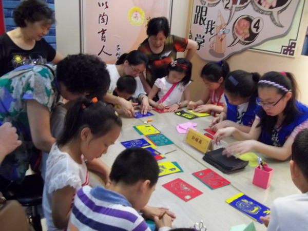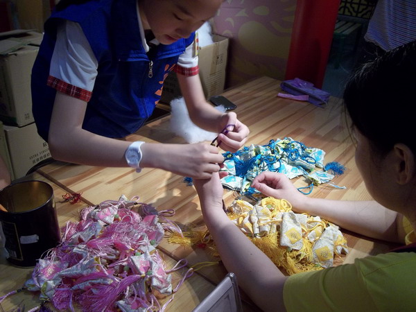 为落实区教育局“要将优秀学生资源整合到学生素质教育活动中去”的要求,在活动中培养我区学生的团队协作能力、管理协调能力,今年暑期,中心通过网上报名、面试选拔、集中培训等环节,招募了200多名中小学生志愿者参与“美丽少年梦 快乐齐分享”体验型课程的指导、协调与服务工作。看,民族文化体验馆里志愿者“蓝马甲”在悉心指导孩子折纸花、捏彩泥、做香囊……;艺术创想区、科技新发现、雏鹰加油站也都活跃着“蓝马甲”的身影。他们秉承“奉献、友爱、互助、进步”的志愿者精神,履行志愿服务承诺,全心全意为学生服务,耐心接待参与活动的学生及家长,为中心的暑期体验型课程增添了一抹亮丽的风景。