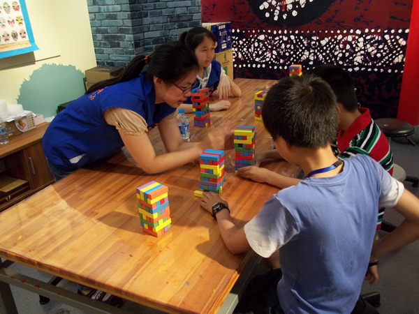 “美丽少年梦 快乐齐分享”——2014年暑期闵行区青少年活动中心体验型课程于7月1日拉开序幕。短短的几天吸引了众多大朋友、小朋友前来体验。整个场馆内除了参与活动的同学之外,还有一群非常引人注目的 “蓝马甲”,他们是活动中心的暑期志愿者。