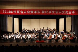 7月5日,上海市学生艺术团浦东新区青少年活动中心管弦乐团携手台湾新北市新庄小学弦乐团,在浦东新区青少年活动中心红领巾剧场举行了“2014年仲夏音乐会暨浦东?新北学生音乐交流活动”。