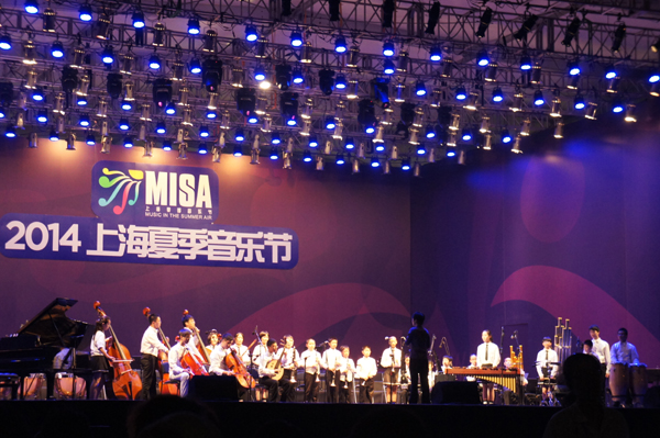 热爱音乐,分享快乐,在弥漫着爱乐氛围的夏日夜空,由上海市交响乐团、上海市教委、浦东新区人民政府共同主办的“乐耀星空”2014上海夏季音乐节----MISA学生活动日”7月14日晚在浦东双辉广场隆重举行。闵行区青少年活动中心学生民乐团经过上海市教委的选拔和推荐,首次携手世界各国的青少年乐团、合唱团的学生们共赴此次音乐盛宴。
