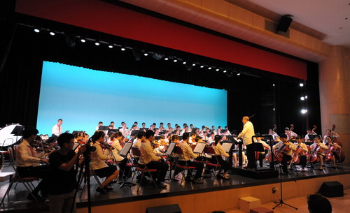 7月29日,上海城市青少年交响乐团在黄浦区青少年科技活动中心剧场成功举行了一场公益音乐会。黄浦区副区长程霄玉、教育局副局长江伟鸣与“爱飞翔培训计划”的志愿者代表参加了音乐会。