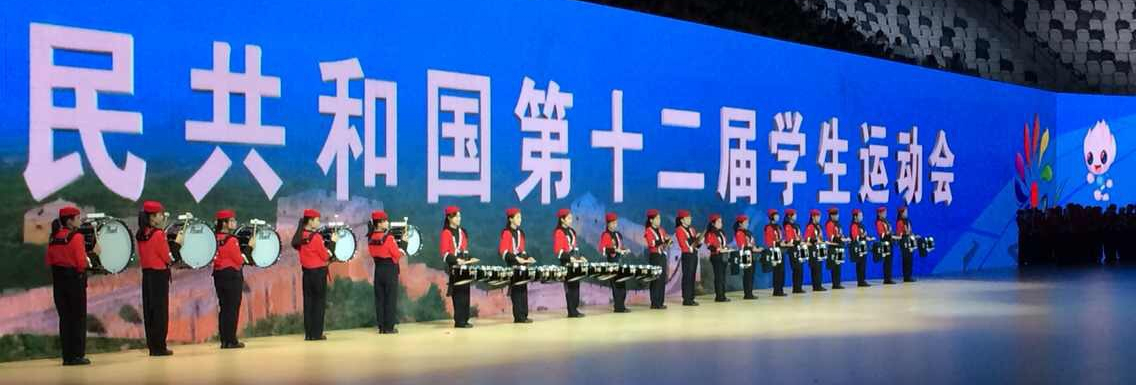 7月28日晚8:00,活动中心少女行进打击乐队参加了第12届全国学生运动会开幕式的开场节目《时代的号角》,与另外三所学校160人共同演绎这个大型行进乐队表演,演奏了《欢迎进行曲》、《时代的号角》及《五星红旗随风飘扬》三个曲目,演出取得极大成功。
