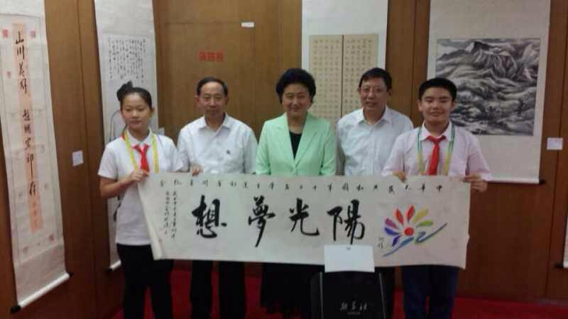静安区青少年活动中心中国画社团学生代表上海学生,将三人合作山水画赠与国务院副总理刘延东奶奶。