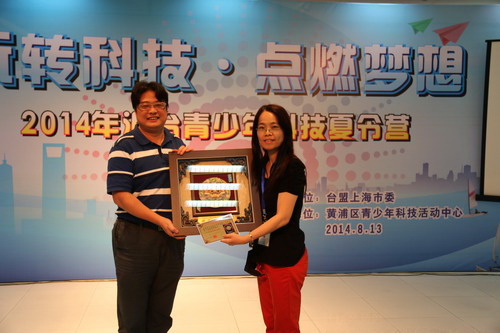 8月13日下午,黄浦区青少年科技活动中心底楼大厅里热闹非凡,教你玩俱乐部、黄浦区红领巾理事会理事与嘉义县永庆高中、台南市长荣中学、南光中学的学生们欢聚一堂,一场别开生面的沪台青少年科技夏令营情系两岸联谊活动正在举行。台盟上海市委副主委、台盟黄浦区委主委刘艳和黄浦区台办副主任邵泉出席了本次活动。