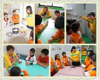 面包房里,孩子们戴上厨师帽,围上围裙,做起了美味寿司,俨然一副小当家的摸样;创意坊里,一张张色彩各异的卡纸,在孩子们的手中变成了“来自星星”的折纸作品;开心书吧内,一个个读书小游戏让孩子们玩得欢声阵阵;体检中心内,大家拿着听诊器有模有样地做起了小医生;攀岩大擂台更是让队员们勇敢地表现自我,感受攀岩的乐趣;小记者训练营内,一个个穿着记者服的队员正尝试着自己的第一次采访;迷你电视台里,队员们大胆地表现自己,学做小主持,彰显着个性魅力;茶艺馆内,队员们围坐一起,泡上一壶奶茶,跟着老师美心修德、学习礼法;数字航模馆内,队员们在电脑前操控飞机模型,感受飞机在手中遨游的快感;操场上“快乐天使向前冲”游戏活动挑战着队员们的体力和毅力。一时间,少年宫成了欢乐的海洋,金灿灿的笑脸四处闪耀。
