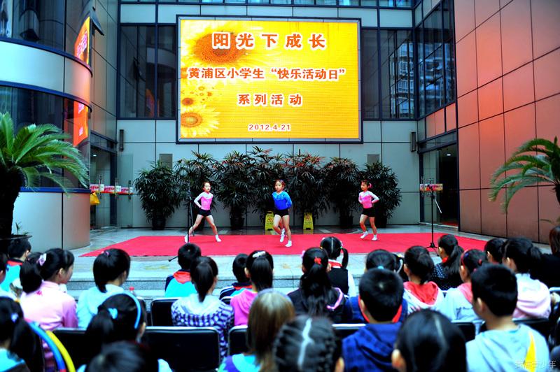 ??? “阳光下成长”——2012年黄浦区小学生“快乐活动日”系列活动,每次组织区内四所小学的学生参加。21日上午,来自我区光明小学、报童小学、第一中心小学及北京东路小学的学生们在中心小广场尽情展示自己的艺术才能,舞蹈、器乐、歌曲等节目交相上演,学生们在活动中丰富了表演经验、提高了技艺、增进了友谊。