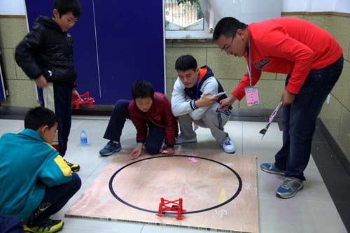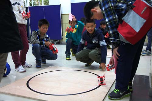 2014年11月23日,上海市西南位育中学迎来了来自全市的中小学机器人爱好者,参加2014上海市青少年“西南位育杯”机器人知识与实践比赛。此次活动由上海市科技艺术教育中心主办,包含机器人行走全圆竞速比赛、机器人击打保龄球竞速比赛、机器人爬坡竞速比赛、VEX IQ机器人挑战赛等不同项目,当天的蒙蒙细雨阻挡不住学生们的参赛热情,吸引了全市的中小学机器人爱好者共聚一堂,与其说是比赛更像是一场聚会,大家切磋技艺,共同成长。???