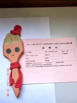 ?一款爬树小松鼠引得围观的学生们赞叹不已。上海市嘉定一中的吴辰宇同学侃侃而谈他的创作灵感:“有一年暑假,我去新西兰旅游,当地的毛利族人个个都是爬树高手——他们把一根藤条系在两个脚踝,双手再拿一根藤条,跃到树上后手脚并用,蹭蹭蹭就爬上去老高。后来我准备参赛作品时,想到了这一幕,于是就制作了这款爬树小松鼠。”