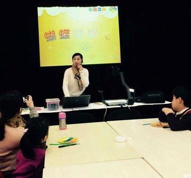 在“蝴蝶翩翩飞”的教学课程中,教师以云南美丽的蝴蝶泉作为导入,即传承弘扬了美丽的少数民族精神,也在领略祖国大好河山的同时发挥了动手创意能力??紊洗笮⊙欠追子辉净卮鹞侍猓诮淌Φ刂傅枷掠爰页ひ黄鸲种谱骱笆魏然疃?。家长和孩子纷纷动手制作,一只只漂亮可爱的蝴蝶就在孩子们的手中诞生了!大小朋友们一个个喜逐眼开,一个小时的亲子活动课程就在这样活跃的气氛中结束了,可是他们仍然不愿离去,个个手拿着制作好的蝴蝶在少年宫的多功能厅里翩翩起舞着!