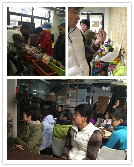 理事们首先来到基础水培系统工作坊,工作坊外籍资深创客 Roger全面讲解植物栽种的基础技能,植物的历史、水培植物的优缺点,以及如何利用简单水培系统(手动浇灌)低成本种植可食用植物并进行维护。严谨的科学精神融合独特的文字视角,理论知识顿时变得生动。除了获得这些理论知识,理事们还亲自动手组装了自己的基础水培系统,并学习如何将幼苗移植进系统。短短的时间,同学们就收获了一组鲜活植物和亲手搭建的整套基础水培系统!值得一提的是,基础系统中椰壳和珍珠岩的应用不但相互补充,而且环保可降解。在三周之后,同学们将会把亲手制作的营养液以3毫升:1000毫升水的比例加入植物中。