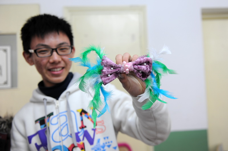发饰、头花在布艺装饰花制作室里已经不再是女孩子的天地,在这里男孩子玩的不亦乐乎,剪刀、热胶枪等工具使用,颜色、质地、珠片的配搭,都浸润着同学们的创作体验,特色明显的清新风、民族风、日韩风、舞台风……装饰花作品真是多姿多彩。