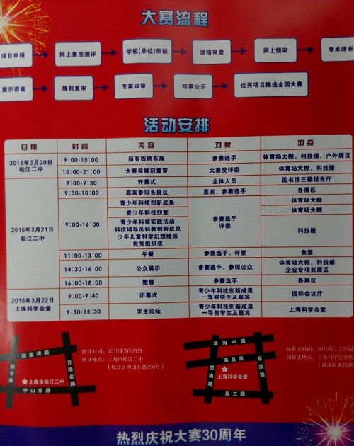 市科学社、区科协、区教育局、区活动中心领导和松江二中相关负责人一早就到各场馆检查和督导布展工作。灯光、音效、排舞、安保、食品安全等巨细无遗。他们的辛勤工作,都只为明天的大赛能在安全的前提下举行;他们的努力付出,都只为全市教师和学生提供一个良好的竞赛环境。希望大家能赛出成绩,赛出风格,赛出松江特色!