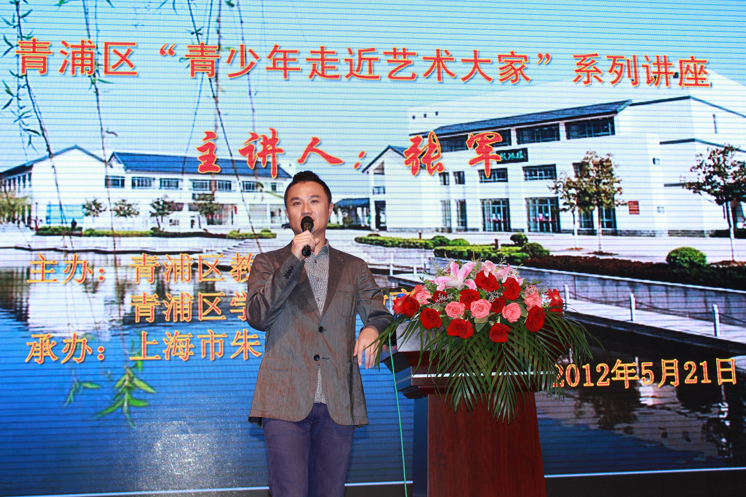 由青浦区教育局、青浦区学生艺术教育委员会主办区少年宫承办的青浦区“青少年走近艺术大家”系列讲座首场活动特邀青浦籍艺术家、“昆剧王子”、联合国教科文组织“和平艺术家”获得者——上海张军昆曲艺术中心艺术总监张军来到朱家角中学做讲演,区各学校艺术分管领导和艺术教师、朱家角中学高一年级、东湖中学、初等职校等校学生代表近700名师生听了报告。