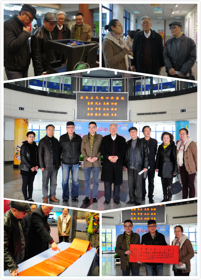 “创意梦工厂”的科幻设计、3D打印、探索实践同样激起了老领导们的兴趣,他们为静安学子能拥有如此优质的教育资源而感到高兴。讲师团的领导们与中心各位领导亲切交流,对教育发展、学生培养、德育教育等诸多问题进行了深入的探讨。与此同时,讲师团团长戚泉木等多位领导为中心题词,当代国学大师黄伟民老先生还作藏头古风诗一首寄语活动中心,希望活动中心能够成为培养英才的沃土。