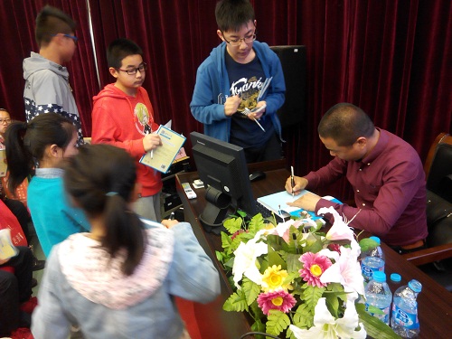 任校长的讲课又是另外一种风格,他喜欢讲故事,被媒体喻为快乐发明魔法师、讲发明故事的莫言。1991年任老师就开始从事中小学科技小发明的教学与推广工作了。由于工作成绩突出,还先后获得瑞安市十佳少先队辅导员、瑞安市首届十大优秀青年、温州市十佳少先队辅导员、浙江省十大教育影响力人物、中国百佳创新型名师等称号。果不其然,课堂上任老师诙谐幽默,一个个生动的案例,逐步将小学员们带进发明的殿堂,原来发明也不难,什么伸缩拖鞋,什么创意高跷,学生们听得都入了神,轮到疑问环节,大家纷纷举手回答。最后任老师为大家带来了自己编写的《快乐发明》一书,并签名赠送给小学员们。