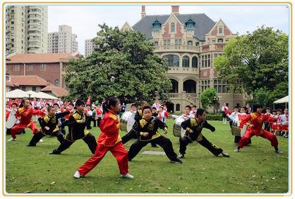 5月8日下午,长宁区少年宫里鼓乐阵阵,来自长宁区13所小学600多名鼓号队员集聚一堂,共同参与由长宁区少工委主办的“2015年长宁区小学少先队金鼓银号决赛展演活动”。此次比赛在初赛评选的基础上,由13所小学入围最后的决赛展演。