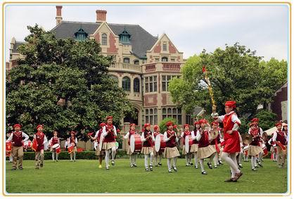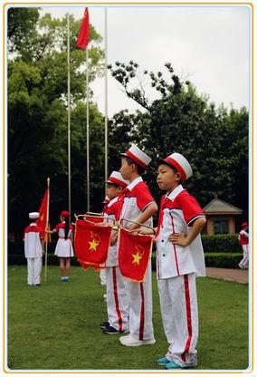 天公作美,竟收敛起滴答的雨点,微风吹来令人神清气爽。少年宫绿意盎然的草坪上涌动着一抹抹红、黄、蓝……,那是参加鼓号展演的少先队员们身着色彩艳丽的仪仗队服饰,急切地等待着上场一展身手,而场上的鼓号队员们更是使出浑身解数。刹那间,飞扬的彩旗、嘹亮的号声、密集的鼓点、多样的队形变化,构成了一幅幅流动的美丽图案。长宁的少先队员们用特有的少先队文化迎接“六?一”儿童节的到来!