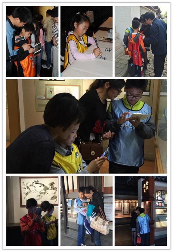 韩天衡美术馆、法华塔、科举博物馆、竹刻博物馆、嘉定博物馆里处处可见拿着手机仔细阅览文物介绍的小选手的身影,路人也用好奇的眼光看着身着爱赏嘉定文化寻宝比赛服,穿梭在街道上的一组组家庭。