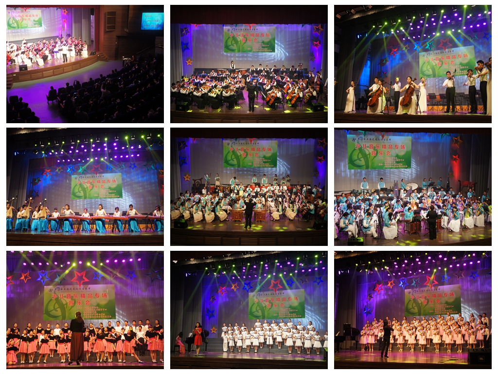 今年3月份,活动组委会向本市小学、初中、普通高中的在籍学生及各区县青少年活动中心、少年宫发出报名通知,经4月专家评审,从70个参赛作品中选取优秀节目,9个少儿精品节目脱颖而出。曹杨二中管弦乐合奏《拉丁幻想曲》、浦东新区青少年活动中心管弦乐团《鲁斯兰与柳德米拉序曲》、格致中学弦乐合奏《春天》、静安区青少年活动中心民乐合奏《倒垂帘》、闵行区青少年活动中心民乐合奏《西北组曲》、杨浦区少年宫民乐合奏《狂欢之舞》、大宁国际小学合唱《梦想》、崇明县青少年活动中心合唱《采茶舞曲》、黄浦区青少年艺术活动中心春天少年合唱团合唱《咚咚喹》,表演形式囊括了器乐、声乐等音乐形式,器乐类包括有民乐、西乐,声乐类包括合唱、小组唱等,在舞台上熠熠生辉、交相辉映。整场音乐会亮点、看点层出不穷。